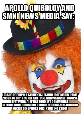 League of Filipino Students LFS and Jose Maria 'Joma' Sison of CPP NPA NDF are 'FAKE AND WANNABE' Maoist Left Wing / Leftist Marxist Communist International Criminal Terrorist Organization and Racist Sinophobe for Insulting China