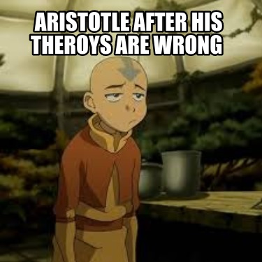 Make a aristotle after her finds out his theorys are wrong Meme!