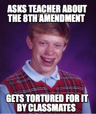 asks teacher about the 8th amendment