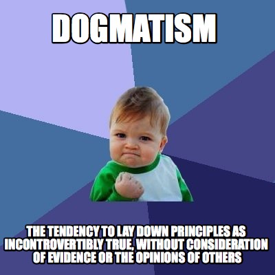 the tendency to lay down principles as incontrovertibly true, without consideration of evidence or the opinions of others
