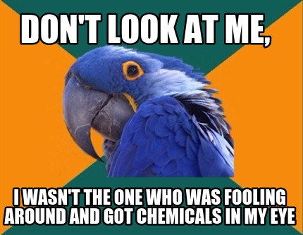 i wasn't the one who was fooling around and got chemicals in my eye