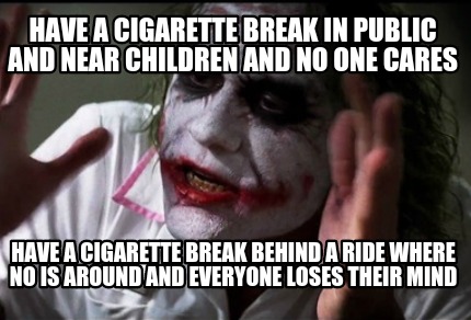 Have a cigarette break in public and near children and no one cares
