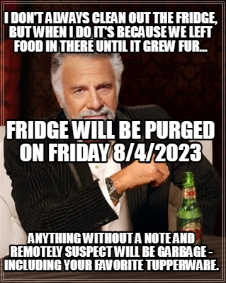 I don't always clean out the fridge, but when i do it's because we left food in there until it grew fur...