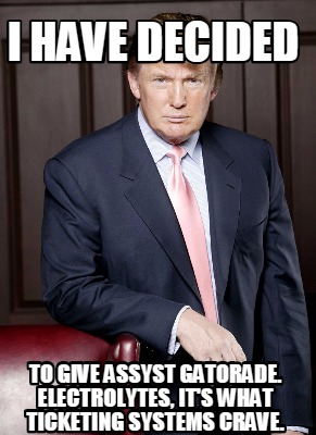 To give assyst Gatorade. Electrolytes, it's what ticketing systems crave.