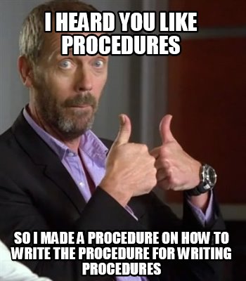 SO I MADE A PROCEDURE ON HOW TO WRITE THE PROCEDURE FOR WRITING PROCEDURES