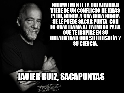 Normalmente la creatividad viene de un conflicto de ideas pero, nunca a una bola nunca se le puede sacar punta, con lo cual llama al palmero para que te inspire en su creatividad con su filosofía y su ciencia.