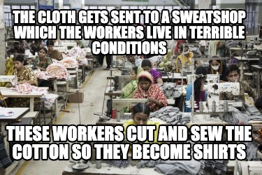 The Cloth gets sent to a sweatshop which the workers live in terrible conditions
