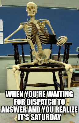 When you're waiting for dispatch to answer and you realize it's Saturday