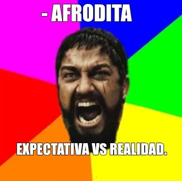 Make your own "- Afrodita Expectativa vs realidad." meme with MemeCreator's free online meme generator. Add text, stickers, and drawings — then download or share. No watermark, no sign-up required.