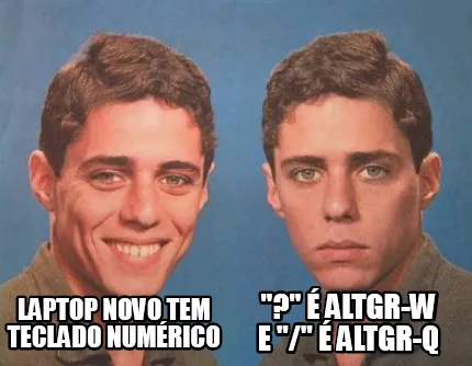 Make your own "Altgr W E Altgr Q Laptop Novo Tem Teclado Numrico" meme with MemeCreator's free online meme generator. Add text, stickers, and drawings — then download or share. No watermark, no sign-up required.