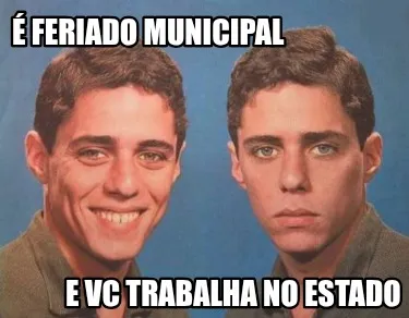 Make your own "É feriado municipal E vc trabalha no estado" meme with MemeCreator's free online meme generator. Add text, stickers, and drawings — then download or share. No watermark, no sign-up required.