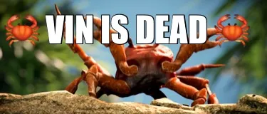 Make your own "???? vin is dead ????" meme with MemeCreator's free online meme generator. Add text, stickers, and drawings — then download or share. No watermark, no sign-up required.