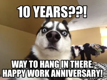 Create Funny 10 years??! Way to hang in there. Happy work anniversary! Meme
