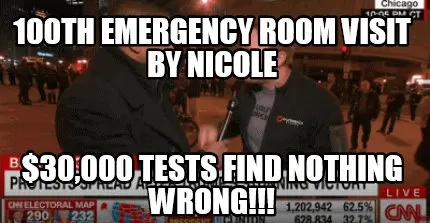 Create Funny 100th Emergency Room Visit By Nicole $30,000 Tests Find Nothing Wrong!!! Meme