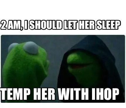 2 AM, I should let her sleep Temp her with IHOP Meme Template