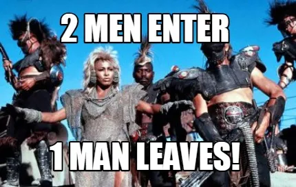 Make your own "Funny 2 men enter 1 man leaves!" meme with MemeCreator's free online meme generator. Add text, stickers, and drawings — then download or share. No watermark, no sign-up required.
