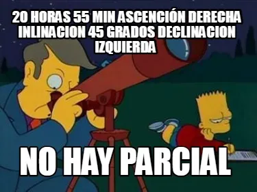 Make your own "20 horas 55 min ascención derecha inlinacion 45 grados declinacion izquierda n" meme with MemeCreator's free online meme generator. Add text, stickers, and drawings — then download or share. No watermark, no sign-up required.