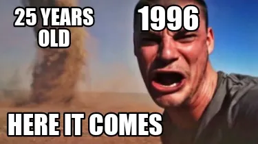 Make your own "25 years old 1996 Here it comes" meme with MemeCreator's free online meme generator. Add text, stickers, and drawings — then download or share. No watermark, no sign-up required.
