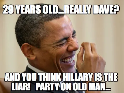 Create Funny 29 Years Old...Really Dave? And you think Hillary is the liar! Party on old ma Meme