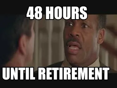 Make your own "Funny 48 Hours Until retirement" meme with MemeCreator's free online meme generator. Add text, stickers, and drawings — then download or share. No watermark, no sign-up required.