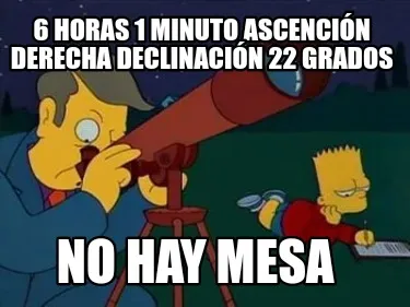 Create Funny 6 Horas 1 minuto ascención derecha declinación 22 grados No hay mesa Meme