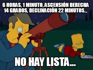 Create Funny 6 HORAS, 1 MINUTO, ASCENSIÓN DERECHA 14 GRADOS, DECLINACIÓN 22 MINUTOS... no h Meme