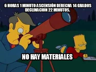 Create Funny 6 horas 1 minuto ascensión derecha 14 grados declinacion 22 minutos. nO HAY MA Meme