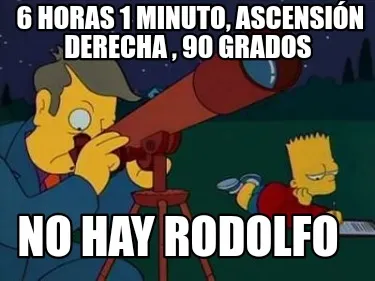 Make your own "Funny 6 horas 1 minuto, ascensión derecha , 90 grados No hay Rodolfo" meme with MemeCreator's free online meme generator. Add text, stickers, and drawings — then download or share. No watermark, no sign-up required.