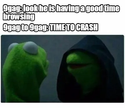 9gag: look he is having a good time browsing 9gag to 9gag: TIME TO CRASH Meme Template