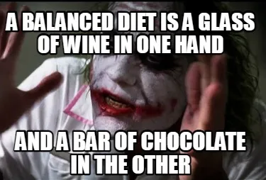 Create Funny A BALANCED DIET IS A GLASS OF WINE IN ONE HAND AND A BAR OF CHOCOLATE IN THE OTH Meme