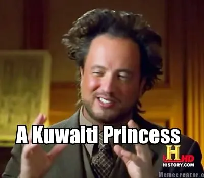Make your own "Funny A Kuwaiti Princess" meme with MemeCreator's free online meme generator. Add text, stickers, and drawings — then download or share. No watermark, no sign-up required.