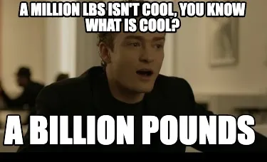 Funny A Million LBS Isn't COol, you KNow what Is Cool? A BIllion Pounds Meme Template