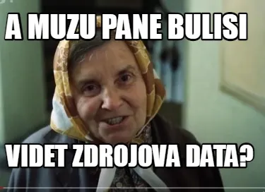 Make your own "Funny A muzu pane Bulisi videt zdrojova data?" meme with MemeCreator's free online meme generator. Add text, stickers, and drawings — then download or share. No watermark, no sign-up required.