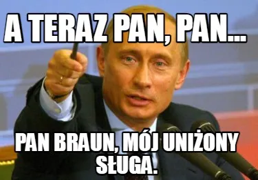 Make your own "A Teraz Pan Pan... Pan Braun Mj Uniony Suga" meme with MemeCreator's free online meme generator. Add text, stickers, and drawings — then download or share. No watermark, no sign-up required.