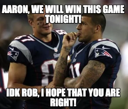 Create AARON, we will win this game tonight! IDK ROB, I HOPE THAT YOU ARE RIGHT! Meme