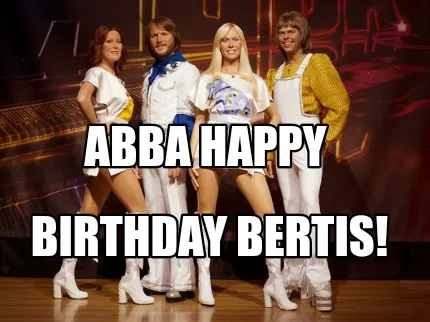 Make your own "Abba happy Birthday bertis!" meme with MemeCreator's free online meme generator. Add text, stickers, and drawings — then download or share. No watermark, no sign-up required.
