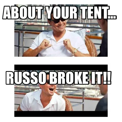 Create Funny About your tent... Russo broke it!! Meme