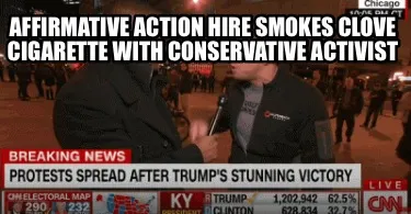 Create Funny Affirmative Action Hire smokes clove cigarette with conservative activist Meme