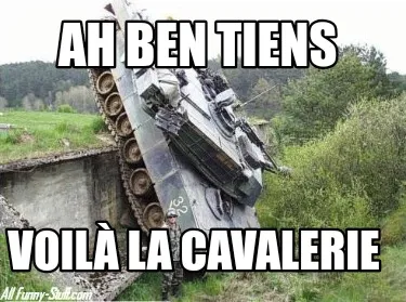 Make your own "Funny Ah ben tiens Voilà la cavalerie" meme with MemeCreator's free online meme generator. Add text, stickers, and drawings — then download or share. No watermark, no sign-up required.