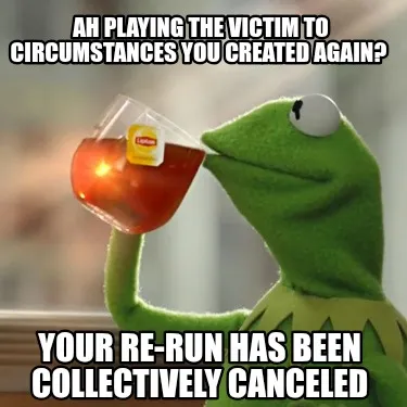 Create Ah Playing The Victim To Circumstances You Created Again Your Re Run Has Been Co Meme