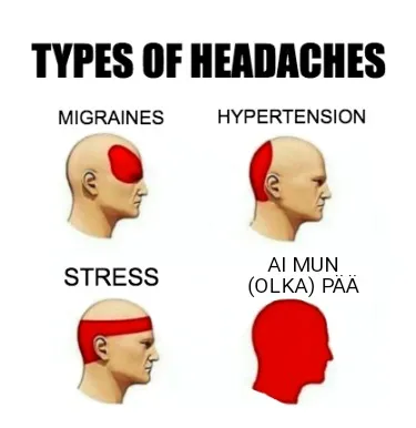 Make your own "Ai mun (olka) pää" meme with MemeCreator's free online meme generator. Add text, stickers, and drawings — then download or share. No watermark, no sign-up required.