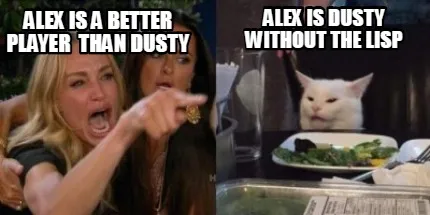Alex Is A Better Player Than Dusty Alex Is Dusty Without The Lisp Meme Template