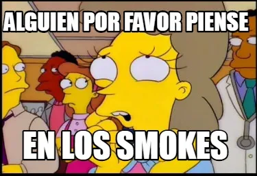 Make your own "Funny alguien por favor piense en los smokes" meme with MemeCreator's free online meme generator. Add text, stickers, and drawings — then download or share. No watermark, no sign-up required.