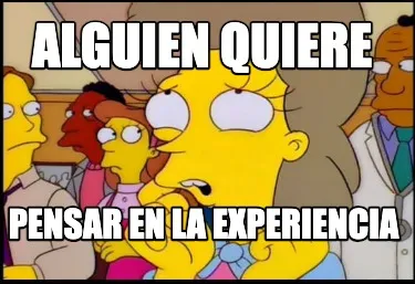 Make your own "Alguien quiere pensar en la experiencia" meme with MemeCreator's free online meme generator. Add text, stickers, and drawings — then download or share. No watermark, no sign-up required.