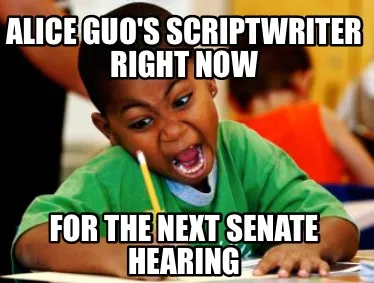 Create Alice Guo's scriptwriter right now For the next senate hearing Meme