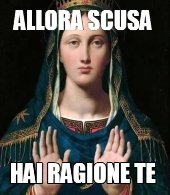 Make your own "Allora scusa hai ragione te" meme with MemeCreator's free online meme generator. Add text, stickers, and drawings — then download or share. No watermark, no sign-up required.