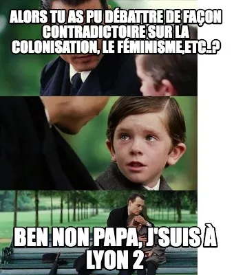 Alors tu as pu débattre de façon contradictoire sur la colonisation, le fémin Meme Template