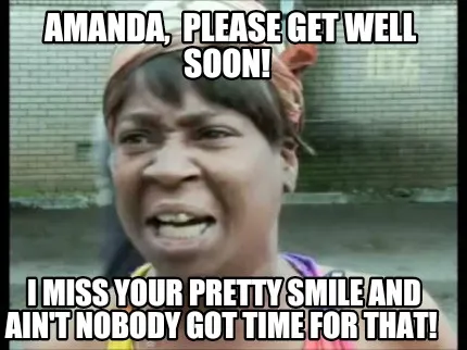 Create Amanda, please get well soon! I miss your pretty smile and ain't nobody got ti Meme