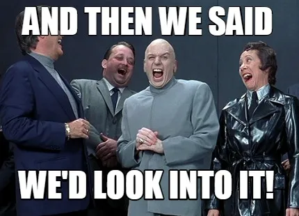 And then we said We'd look into it! Meme Template