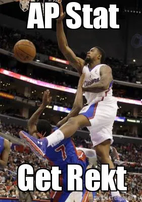 Make your own "AP Stat Get Rekt" meme with MemeCreator's free online meme generator. Add text, stickers, and drawings — then download or share. No watermark, no sign-up required.